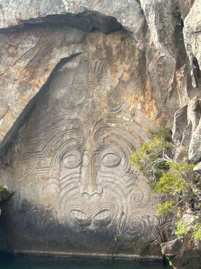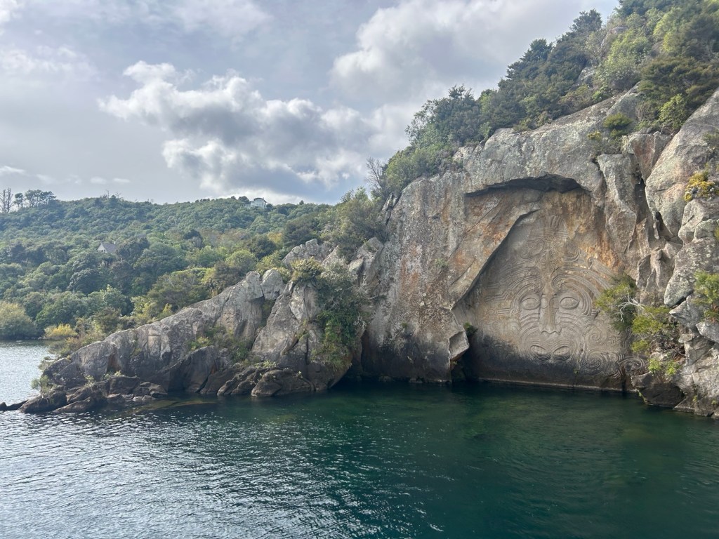 We also travelled to Lake Taupo to see the beautiful Māori rock carvings in a cliff along the shore of the lake.